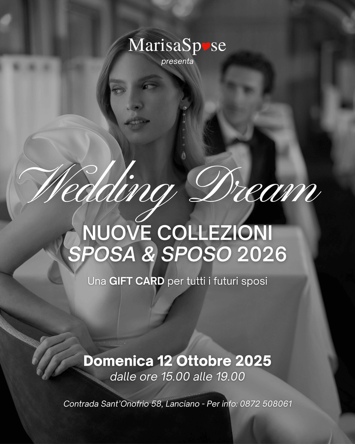 Dalle ore 15.00 alle 19.00 ti aspettiamo in atelier per la PRESENTAZIONE IN ESCLUSIVA DELLE NUOVISSIME COLLEZIONI 2025 SPOSA & SPOSO, ed in anteprima assoluta una capsule della collezione cerimonia!